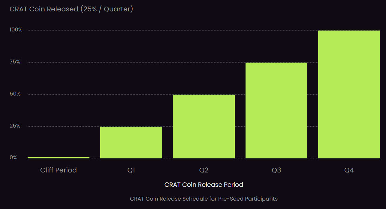 Put simply, holding CRAT coins offers the potential for both value appreciation and additional rewards, including a share in the platform’s success.